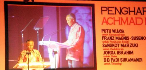 "Penghargaan Achmad Bakrie 2008 ini semacam hadiah Nobelnya Indonesia. Mereka dihargai bukan karena satu per satu karyanya, tapi menghargai berbagai macam kepeloporan atau inovasi yang dilakukan sepanjang hidupnya. Ini skenario besar untuk memberikan penghargaan ilmiah," kata Juru Bicara Dewan Juri Penghargaan Achmad Bakrie 2008, Hamid Basyaib, di Jakarta, Rabu (14/8).